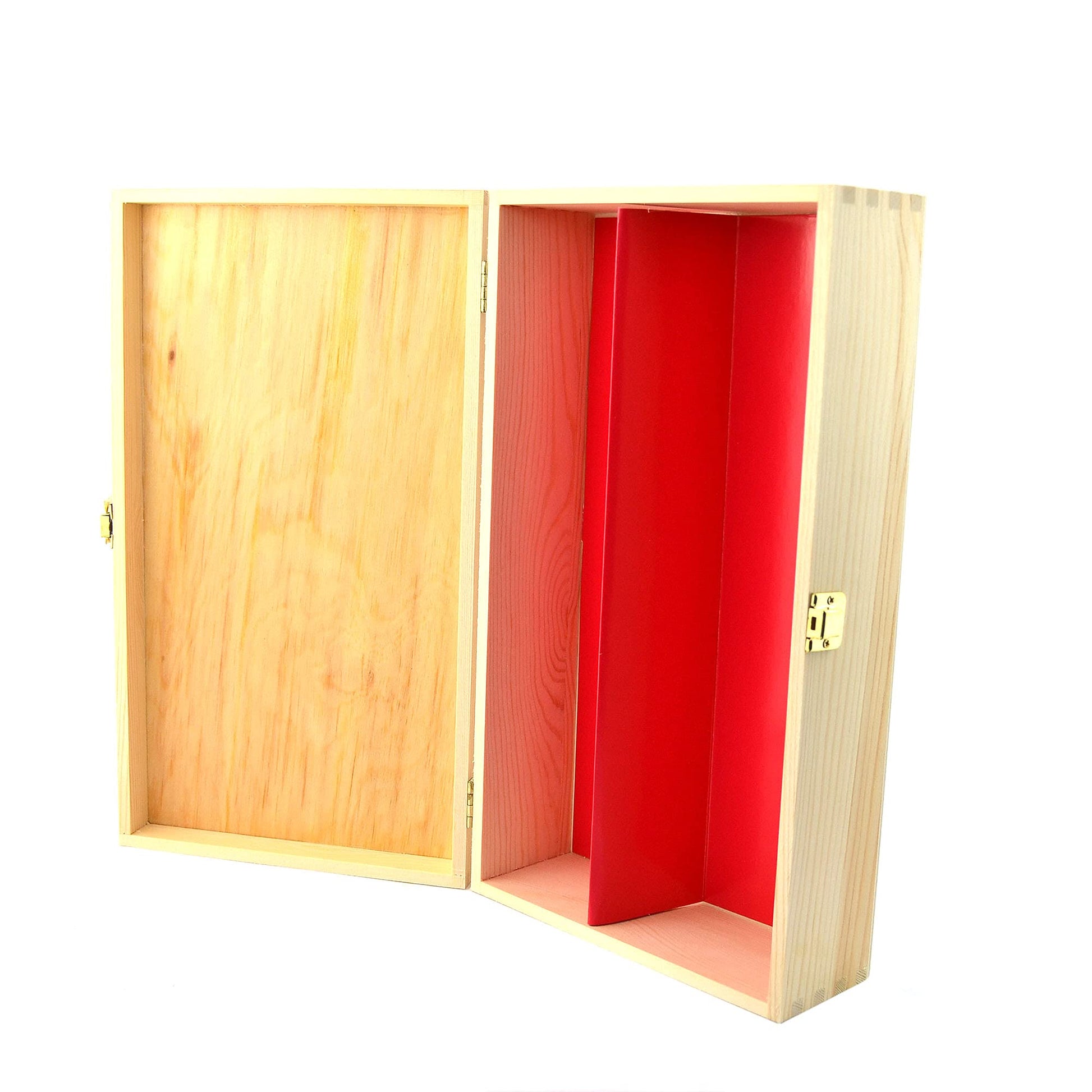 1 caja de vino de madera (para 2 botellas) con cierre divisorio de cartón rojo